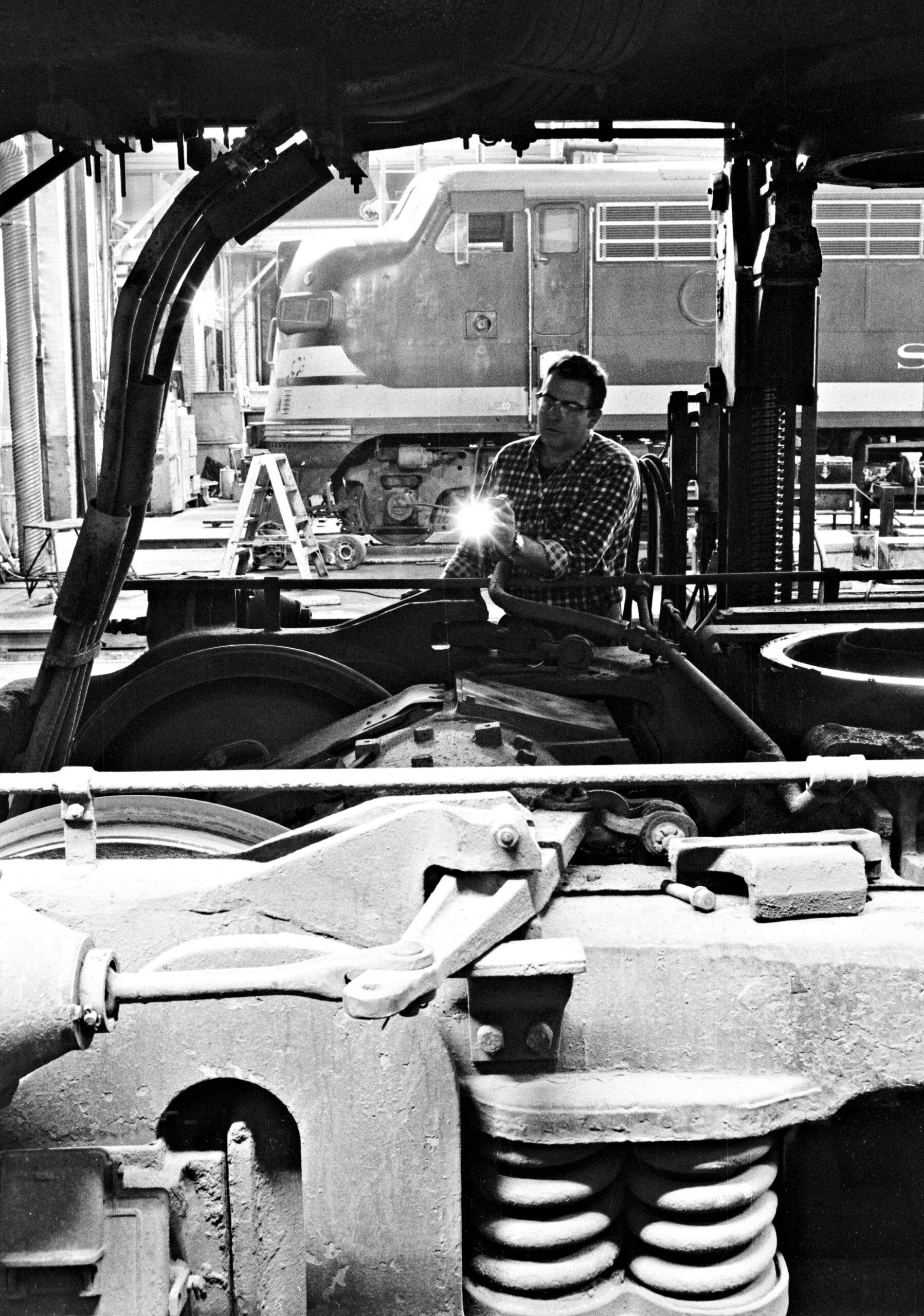 | Binder 2 | Extent 1,364 black-and-white negatives Dates 1940 – 1969 Locations Canada: Quebec United States: California, Colorado, Illinois, Indiana, Iowa, Kansas, Maryland, Minnesota, Missouri, Nebraska, New York, Ohio, Pennsylvania, Utah, Wisconsin, Wyoming Railroads Atchison, Topeka & Santa Fe Railroad; Baltimore & Ohio Railroad; Boston & Maine Railroad; Canadian Pacific Railway; Central Railroad of New Jersey; Chesapeake & Ohio Railway; Chicago & North Western Railroad; Chicago Great Western Railway; Chicago North Shore & Milwaukee Railroad; Chicago Union Station Company; Chicago, Burlington & Quincy Railroad; Chicago, Milwaukee, St. Paul & Pacific Railroad; Chicago, Rock Island & Pacific Railroad; Delaware & Hudson Railway; Denver & Rio Grande Western Railroad; Electro-Motive Division, General Motors Corporation; Erie Railroad; Fairbanks, Morse & Company; Grand Trunk Western Railroad; Gulf, Mobile & Ohio Railroad; Louisville & Nashville Railroad; Monon Railroad; New York Central Railroad; New York, New Haven & Hartford Railroad; Norfolk & Western Railroad; Pennsylvania Railroad; Peoria & Eastern Railway; San Francisco Municipal Railway; Soo Line Railroad; Union Pacific Railroad; Wabash Railroad |