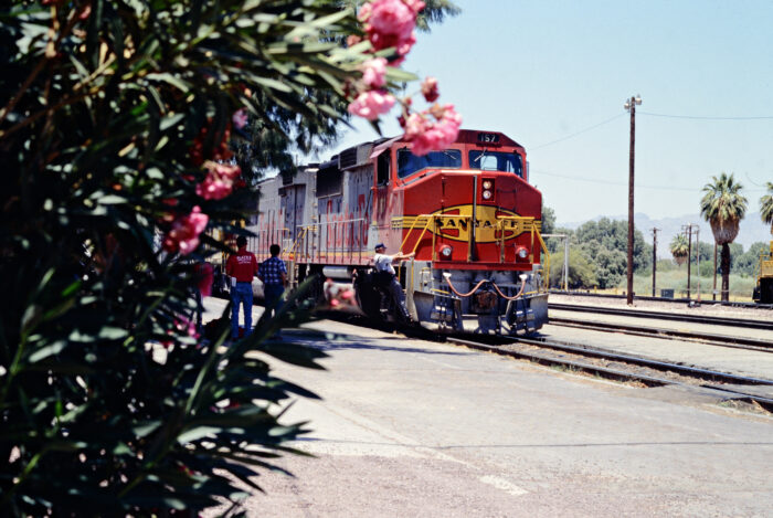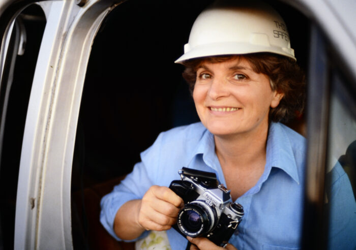 After her children were in school, she enrolled in college and advanced to commercial photography and illustration during 1968-72. At age 36 she won her first award, recognized by her city college art faculty as a “promising photographer.” While at the University of California, Davis, she completed an internship with the local PBS station as an illustrator. In 1974 she began working seasonally for California State Parks as an illustrator and photographer, then onto the Bureau of Reclamation photographing a dam construction site; in 1978 she was hired as a permanent State Parks employee, assigned to document the construction of the future California State Railroad Museum (CSRM) in Sacramento. This included photographing the restoration of the museum’s rail equipment collection, sparking her love for railroad history. By 1981, she was also photographing the restored railroad equipment at the Nevada State Railroad Museum in Carson City.