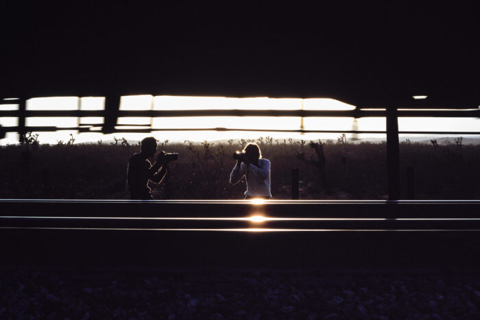 She met Richard “Dick” Steinheimer in 1983 at a reception for his exhibit at CSRM, where she was still working part-time. They shared an immediate attraction with their love of photography, adventure, and trains. They married a year and a half later following a five-month “self-assignment” collaboration photographing the rebuilding of a Southern Pacific snowshed on Donner Summit. She and Stein also produced a traveling exhibit, “Winter’s Professionals,” about the SP’s legendary snow-fighting crews.