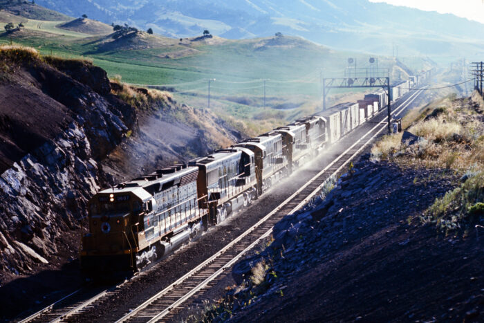Using primarily Leica and Hasselblad cameras (of which he was an ardent devotee), Ron created an incredible body of both color and black-and-white photography. While trains and railroads were his primary subjects, he also photographed airplanes extensively as well as other modes of transportation, infrastructure, and landscapes from the 1950s through the 2010s. He covered Colorado’s railroads extensively throughout his life, and he also spent considerable time in Montana and western Canada, as well as Europe. He frequently sought locations that conveyed the geographic features and other characteristics of western railroads, and he liked to return to the same locations over the years to record their seasonal variety and changes through time.