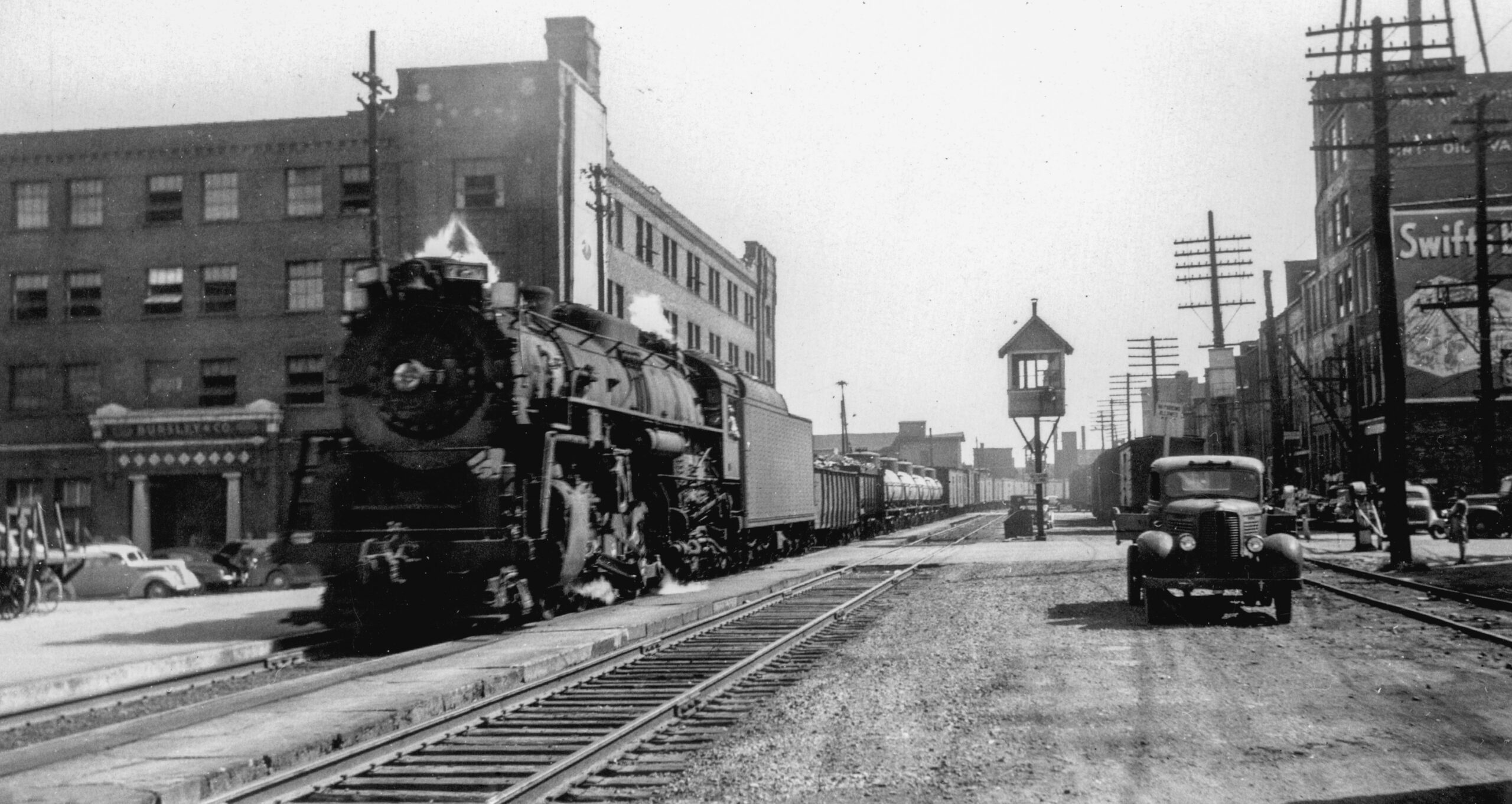 Then World War II and Army service at the headquarters of an armored division in Europe intervened from 1942 through 1945. But on March 1, 1946, Johnson began his years-long rail-photography avocation, writing, “One has to start somewhere if he is to take action pictures of railroad subjects, and after putting it off for a while I started here—on 11th St. in Michigan City, Indiana,” where he was working for the YMCA.