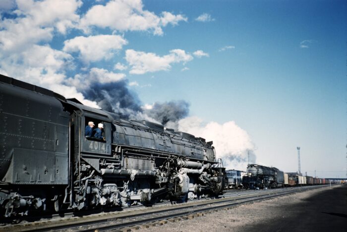 Wrote Kistler: “This was the end of a perfect day, heading back from Barstow into a setting sun, the huge 80-inch drivers of Baldwin 4-8-4 3780 biting into the 0.9-to-1.5 percent grades near Hesperia, siderods flashing in the dwindling light, the mountains outlined by haze, the smell of oil smoke and valve oil drifting back, the sounds of the perfectly timed exhaust from the stack (with each beat chopped evenly) and wheel clicks over rail joints . . .”