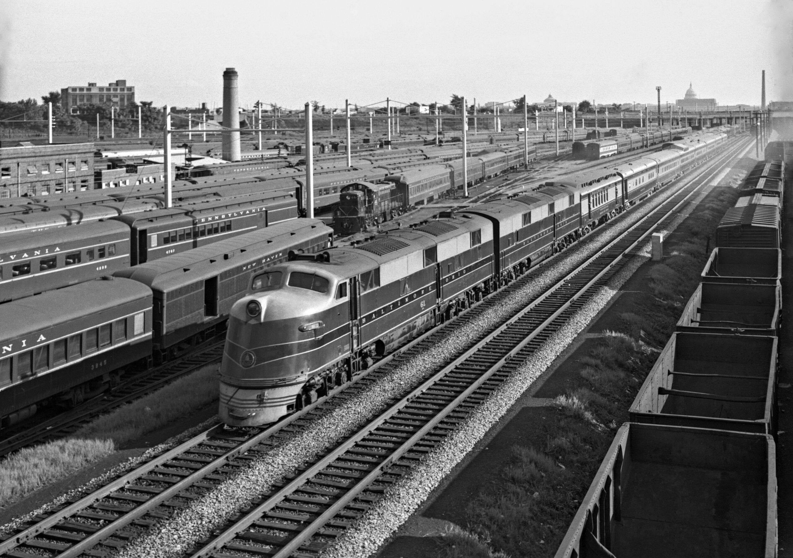 | Box 01 | about 750 black-and-white negatives (various sizes) | 1947 – 1958 | Canada, United States | Baltimore & Ohio Railroad; Canadian Pacific Railway; New York Central Railroad; Northern Pacific Railway; Southern Pacific Railroad; Wabash Railroad; Washington Terminal Company |