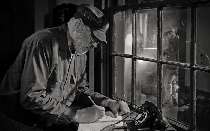 This image triggers a pride and nostalgia for the people of the Railroad. Machines are big and powerful but they are built and run by people, sometime by people using nothing more than a pen and paper to keep it all together. The simplicity of this image draws my eye again and again. But within that simplicity, there is much happening. The angle of the camera takes the rigidity and structure away from the paper and the softness of the shape of the human hands lines that left side like an anchor. Each element is a humanizing touch; a plaid shirt (my dad has a plaid very similar to that), the precision of the pen, and the tidy but complete organization create an overall feeling of control and calm.