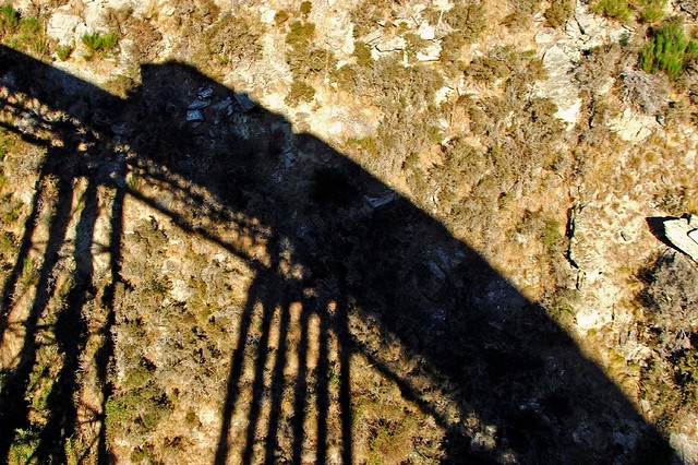 The shadow image takes such a busy but simple background and makes a pleasing and almost unidentifiable shadow the focal point. With the lines of the bridge, the lower half of the frame is again broken up.