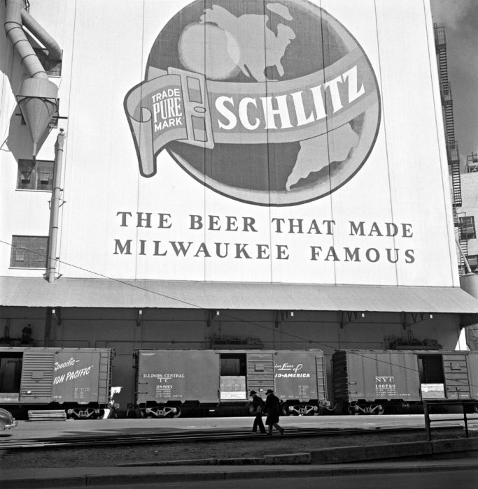 With the slogan, “The Beer That Made Milwaukee Famous,” Schlitz became the world’s best-selling beer in the early 20th century. Schlitz’s success allowed them to have a direct terminal on the Milwaukee Road. The six-mile stretch that run through the city became known as the Beer Line. Photograph by Wallace Abbey, Abbey-01-082-05