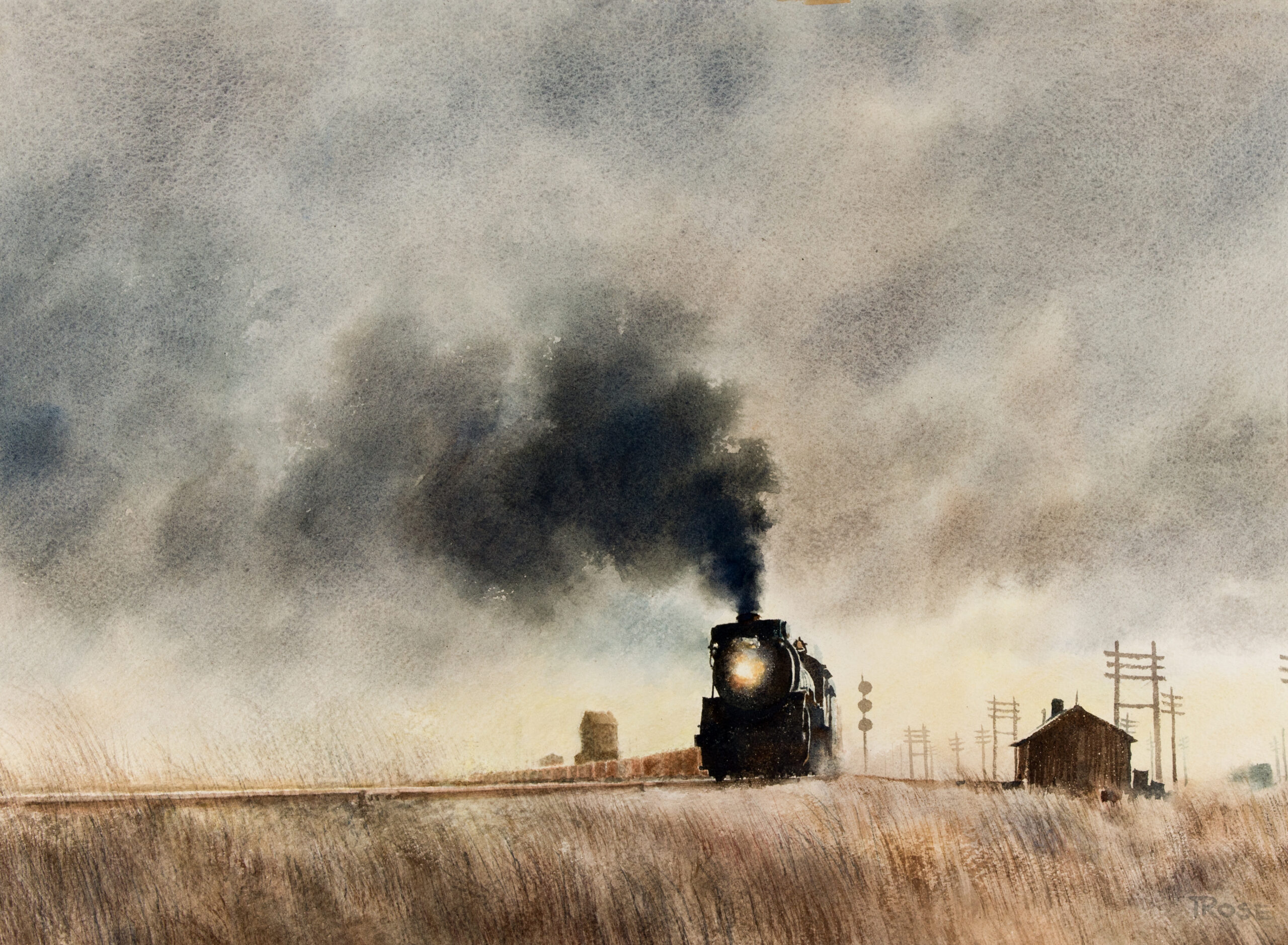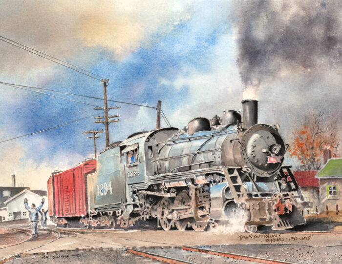 On the occasion of Trains magazine’s 75th anniversary in 2015, Steve Krueger donated his painting Frisco 1294 to Kalmbach. His 13×17-inch watercolor on paper includes an inscription at lower right that reads: