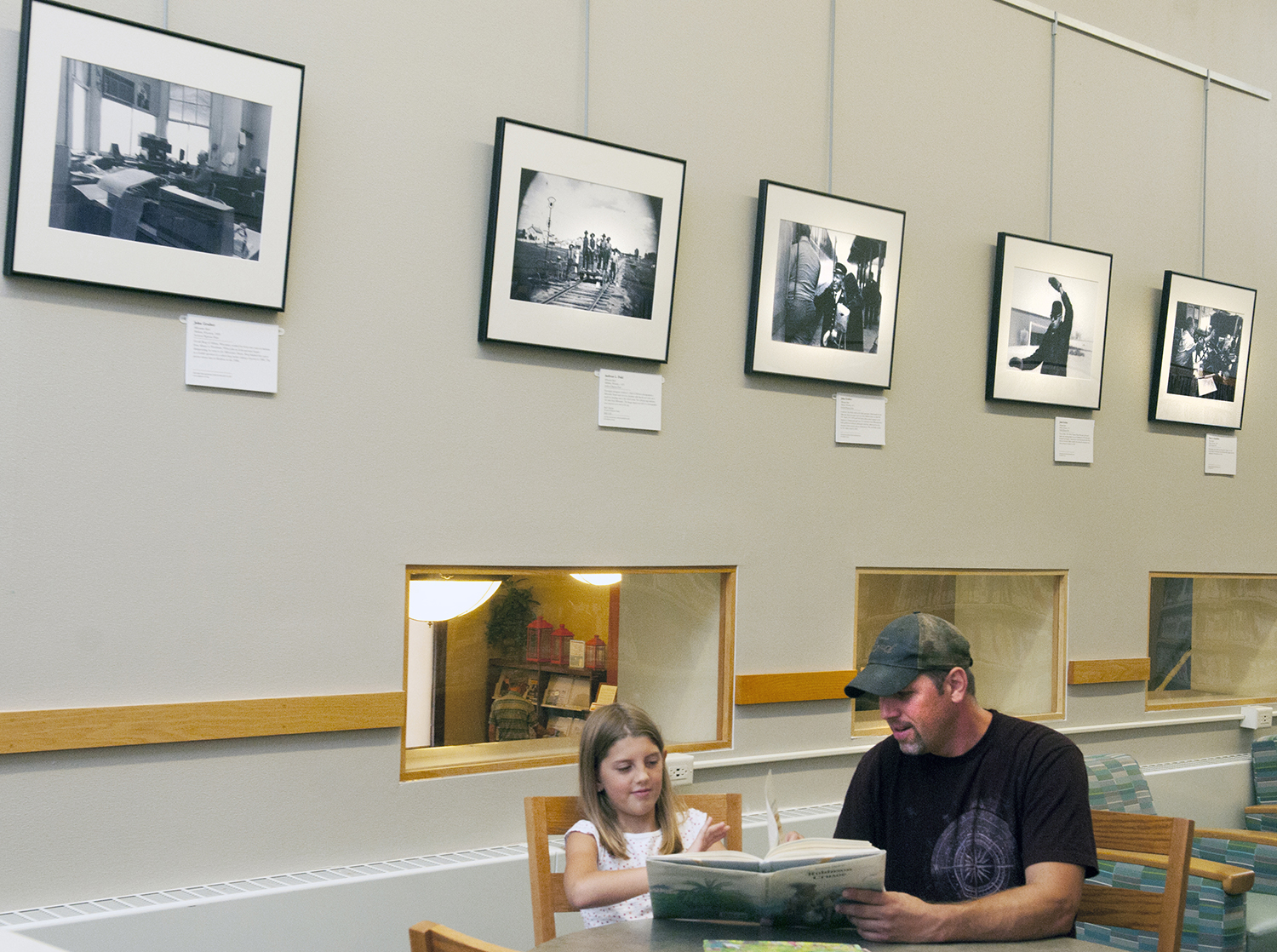 Installation of Faces of Railroading: Railroads and the Making of Madison and Dane County at the Fitchburg (left) and Sun Prairie libraries. Photographs by Scott Lothes