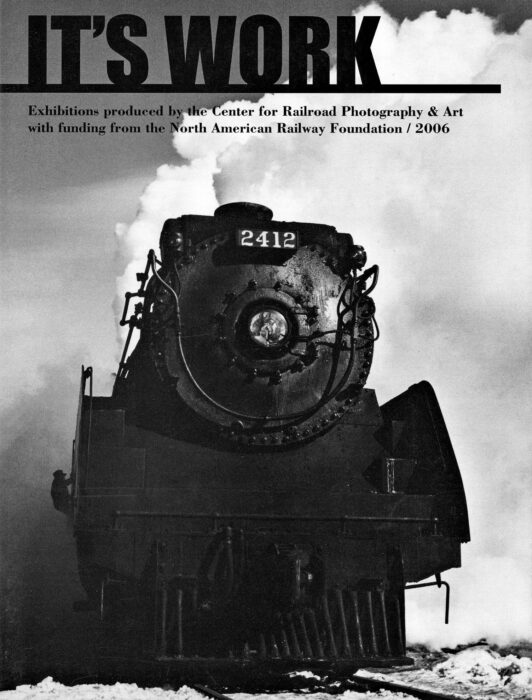 To mark the completion of the Representations project on September 30, 2006, the Center published It’s Work, a 32-page publication featuring 41 memorable photographs from the seven exhibits. Twenty-eight photographers are represented (four photographs are anonymous) in It’s Work. “While driven by different motivations–some to promote or persuade, some to depict, and some to offer commentary on both the emerging and post-industrial worlds–photographers have created a visual legacy of American work and life that we have not yet fully explored, even while they make new images daily,” the introduction says. Classic Trains (Summer 2007, page 90) and Railfan & Railroad (June 2007, page 12) featured It’s Work in product news and reviews.