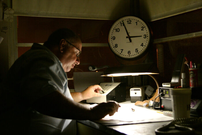 The images emphasize the American Midwest and West, where some railroaders run trains or maintained tracks in all weather and at all hours of the day and night, while others spent their entire job shift in front of computer screens. The railroad is like no other employer. A worker’s life is defined by demanding work rules; irregular hours of service; and a host of labor, safety, and retirement laws that set the railroad apart from other industries. Even the U.S. Supreme Court, in a 1957 decision, observed that “the railroad world is like a state within a state.” The workers themselves are the focus of these photographs, on and sometimes off the job. The images hint at personal stories–of careers, families, and relationships. The settings are varied, since the railroad touches every part of the America, from thriving cities to forgotten settlements. While railroad employment numbers in the 21st century are greatly reduced from those of earlier decades, many workers continue to perform their duties in the time-honored railroad manner, ever mindful of the urgency behind the railroad’s efficient and demanding flanged wheel on steel rail technology. As in the past, many feel the pressure to put their work before everything else in their lives.