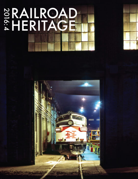 The Fall 2016 issue of Railroad Heritage® debuts a new look to the magazine—the first extensive redesign in its sixteen-year history. On the cover is Robert LaMay’s night view of Shore Line East F7A no. 6690 in the shops at New Haven, Connecticut, in 1992. LaMay’s photography resides at Archives & Special Collections of the University of Connecticut Library, the Center’s partner for Conversations Northeast, a one-day conference at Storrs, Connecticut, on October 29, 2016. Archivist Laura Smith shares more highlights in an article about UConn’s railroad photography. We share some highlights from our own archive with a gallery of J. Parker Lamb photographs of Duluth, Missabe & Iron Range’s 2-8-8-4 “Yellowstone” steam locomotives. Finally, Marc Entze discusses his decade-long project of photographing the timber-hauling St. Maries River Railroad in northern Idaho, a case study of the benefits that can come from taking a very deep look at relatively small place. We discuss the importance of metadata in our regular “Out of the Archives” column and share some suggestions of how to prioritize this tedious but critical part of the archiving process. We also debut a new column on European travel posters by Arjan den Boer, drawing from his outstanding retours.eu website. News, letters, and two new book reviews round out the issue.