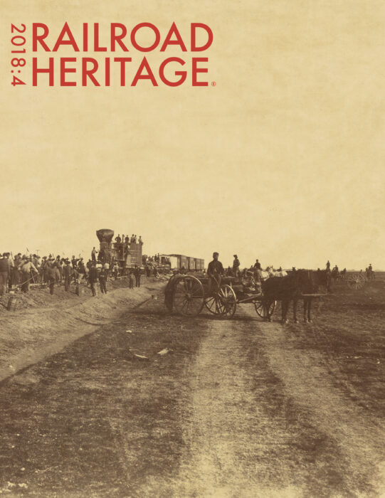 Curator Alexander Benjamin Craghead gives a preview of our new project, After Promontory: One Hundred and Fifty Years of Transcontinental Railroading, which we are preparing for next year’s sesquicentennial of the completion of the nation’s first transcontinental railroad. Jean Bubley and Laura Handlin present New York’s Third Avenue El in photographs by Esther Bubley, Jean’s aunt. Artist J. Craig Thorpe shares a new painting and his thoughts on the parallels between Interurban and Progressive eras. Hailey Paige previews the presenters for our regional Conversations West conference on September 22 at the California State Railroad Museum in Sacramento. In this installment of “Out of the Archives,” Adrienne Evans shares tips on donating collections to archives. Arjan den Boer showcases two posters for the unique Autorails Bugatti of the 1930s. Finally, we commemorate the passing of a legendary railroad photographer with a tribute to Jim Shaughnessy.