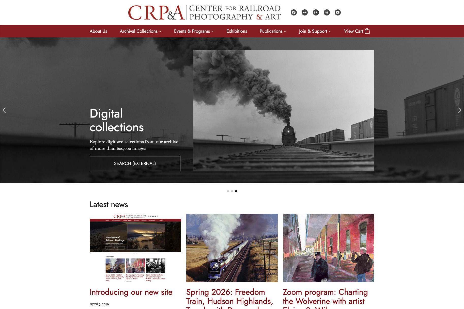 Since 1997, the Center for Railroad Photography & Art has been committed to telling railroading’s stories through imagery: interpreting the past creatively, connecting it to the present while looking to the future. The Center, a 501(c)(3) not-for-profit arts and education organization, achieves its mission through exhibitions, conferences, and publications that spring from its core commitment to collect, preserve, and then make widely available imagery that portrays the 200-year history of railroads.